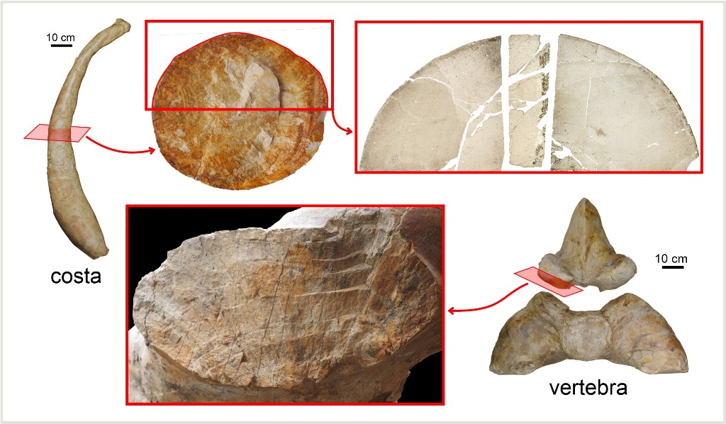 “La taglia titanica delle ossa di Perucetus rappresenta certamente il tratto più appariscente di questa nuova specie – afferma Alberto Collareta – ma l’enorme massa ricostruita per l’intero scheletro riflette anche l’alto peso specifico della tipologia di tessuto osseo di cui esso si compone. Tutte le ossa di Perucetus, infatti, sono costituite da osso estremamente denso e compatto, simile a quello che si rinviene, anche se in maniera decisamente meno marcata, nei sireni attuali. Questi mammiferi abitano in acque costiere poco profonde, dove uno scheletro particolarmente pesante funziona da ‘zavorra’, facilitando così l’alimentazione al fondale ed aumentando l’inerzia all’azione delle onde. L’ispessimento e appesantimento dello scheletro, in termini tecnici pachiosteosclerosi, che accomuna Perucetus ai sireni non si rinviene in nessun cetaceo attuale. Dunque, benché sia difficile fornire un’interpretazione paleoecologica di questo straordinario adattamento, è probabile che esso fornisse a Perucetus la stabilità necessaria per abitare acque agitate prossime alla linea di costa. Perucetus si alimentava probabilmente presso il fondale, forse privilegiando la ricerca di carogne di altri vertebrati marini come fanno oggi alcuni grandi squali”.
