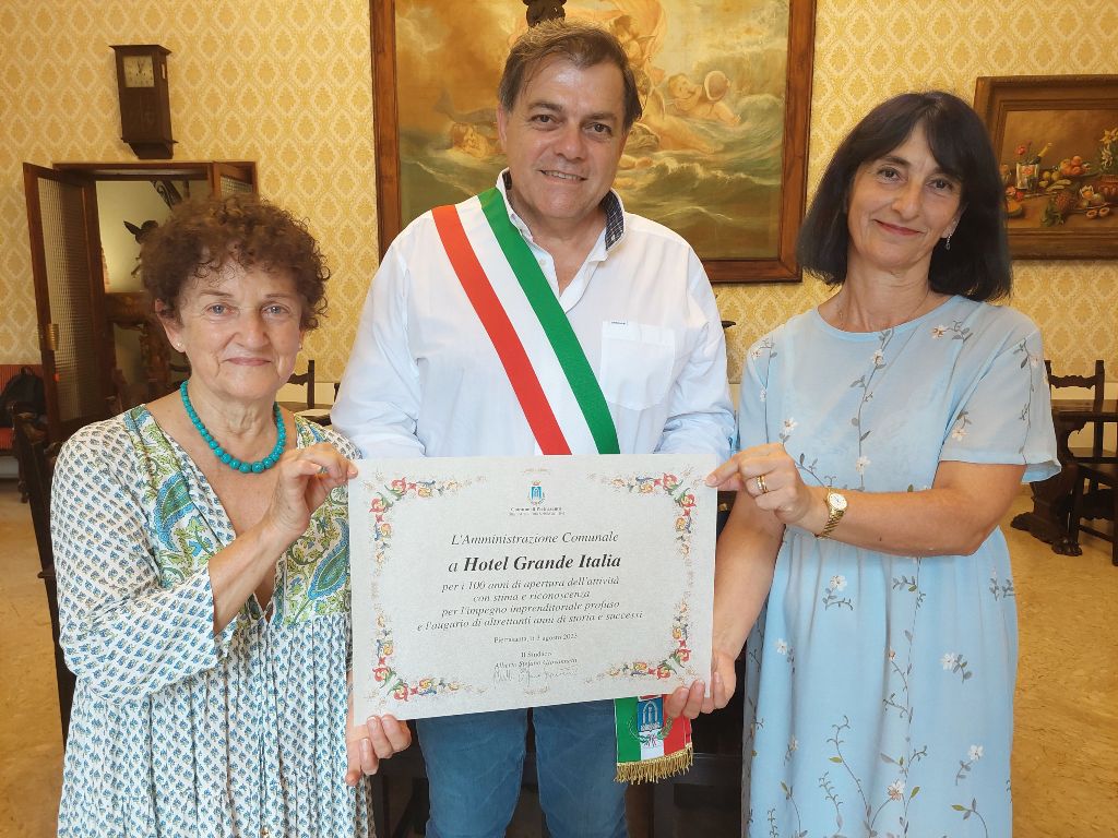 Un “compleanno” speciale che l'amministrazione comunale di Pietrasanta ha voluto celebrare insieme alle sorelle Barbara e Gabriella Casini (nipoti di Augusto) che, oggi, gestiscono l'albergo, consegnando loro una pergamena di ricordo e buon auspicio, per altri 100 anni di successi. Il sindaco Alberto Stefano Giovannetti, accompagnato dall'assessore Matteo Marcucci, dal vicepresidente del consiglio comunale Antonio Tognini e dal capo di gabinetto, Gabriele Marchetti, ha presentato alle due imprenditrici le congratulazioni della comunità cittadina, soffermandosi a sfogliare il prezioso album che Barbara e Gabriella custodiscono con grande cura, ricco di fotografie, articoli di giornale e frasi di saluto e ringraziamento lasciate da chi, un secolo fa, era stato loro ospite per una vacanza al mare.