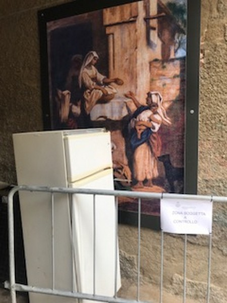 I rifiuti ci sono di nuovo - prosegue Rossi -, ma purtroppo chi dovrebbe vigilare il centro storico, vi passa davanti e non se ne preoccupa. Non credo proprio che non li vedano, tanto sono evidenti e collocati nello stesso posto da gente ormai da tempo abituata a farlo. Vi sono mobili di poco valore, suppellettili varie, tavole e spazzatura comune davanti e appoggiati ai dipinti di Puccinelli.