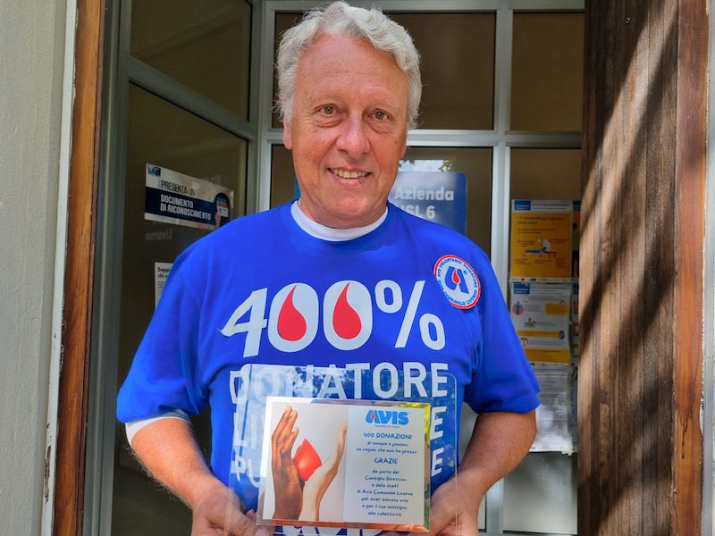 Per lui oggi è stata la donazione numero 400. Un record di generosità, quello di Mauro Liggieri, pensionato, socio di Avis Livorno da oltre trent'anni, che stamani al Centro Trasfusionale di Livorno ha fatto la sua ennesima donazione di sangue e plasma, ricevendo una targa in riconoscenza del suo impegno.