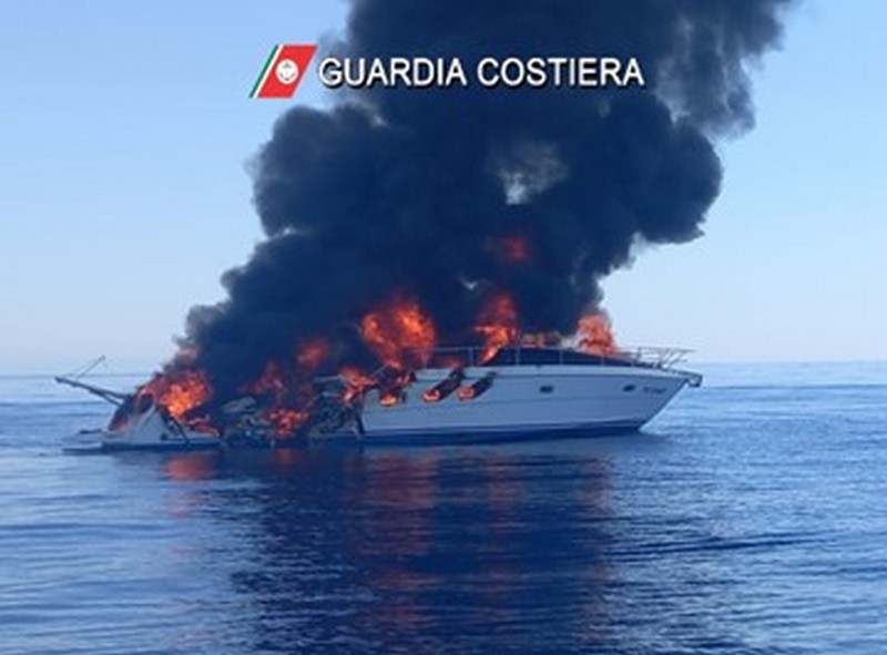 Un'imbarcazione da diporto, dirottata dalla sala operativa, ha individuato ed affiancato la zattera con i naufraghi che, poco dopo, venivano presi a bordo della motovedetta rimasti illesi dall’incendio e fuori pericolo.