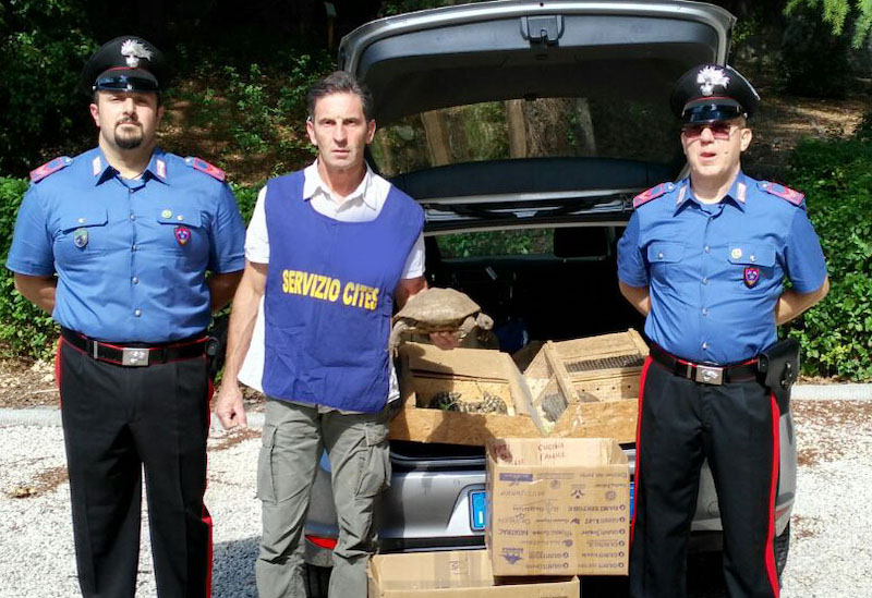 Trentasette testuggini di terra in un appartamento a Firenze, tutte detenute illegalmente. Si tratta di esemplari di Testudo Hermanni scoperti dai carabinieri di Firenze durante una normale verifica. È emerso che il proprietario aveva presentato la denuncia di due soli esemplari di Testudo Graeca, non presenti all’atto del controllo, mentre per le tartarughe Testudo Hermanni non è stato presentato alcun documento che attestasse la legale detenzione. La persona è stata denunciata perché deteneva, senza la prescritta documentazione, animali protetti, così come previsto dalla legge che disciplina i reati relativi all'applicazione in Italia della Convenzione sul commercio internazionale delle specie animali e vegetali in via di estinzione.