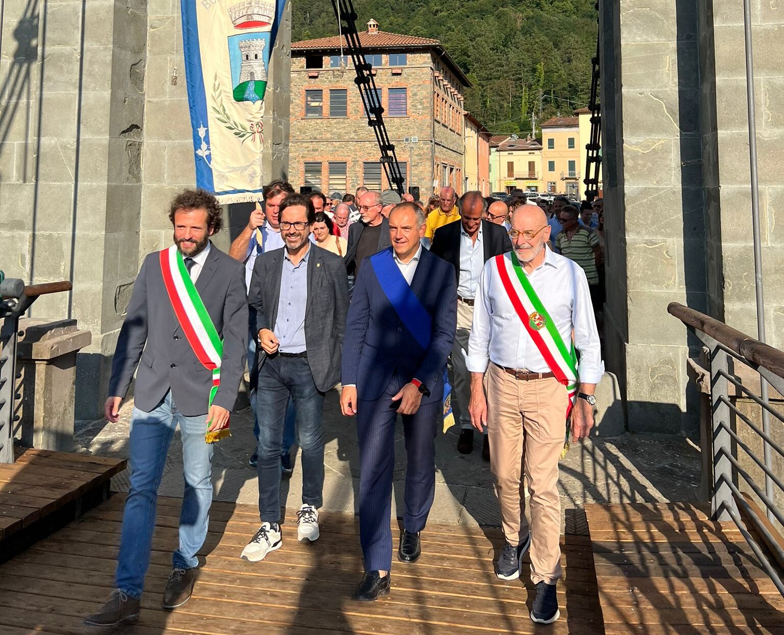 Sono terminati con largo anticipo rispetto a quanto previsto i lavori e torna percorribile il Ponte delle Catene che collega Fornoli a Chifenti, nei comuni di Bagni di Lucca e di Borgo a Mozzano, in Mediavalle. L’infrastruttura - di competenza dell’amministrazione provinciale - è stata, infatti, inaugurata questo pomeriggio (11 agosto) dal presidente della Provincia, Luca Menesini e dai sindaci di Borgo a Mozzano e consigliere provinciale, Patrizio Andreuccetti, e Bagni di Lucca, Paolo Michelini, mentre la Fondazione Cassa di Risparmio di Lucca è stata rappresentata dal consigliere Luca Marchi.