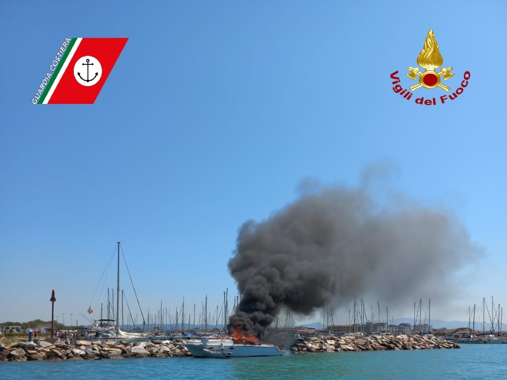 Barca a fuoco nel porto di Marina di Cecina quest'oggi, lunedì 14 agosto, a mezzogiorno. Il mezzo era ormeggiato quando sono partite le fiamme. Un passante ha chiamato la Capitaneria di Porto, che ha fatto rimorchiare il natante all'imboccatura del porto, lontano dalle altre imbarcazione. I vigili del fuoco di Livorno sono intervenuti in fretta e hanno domato le fiamme. La barca, rimasta incendiata nella parte del motore, è stata rimorchiata su un carro gru per evitare l'affondamento o la dispersione di liquidi inquinanti. Non ci sono stati feriti coinvolti.