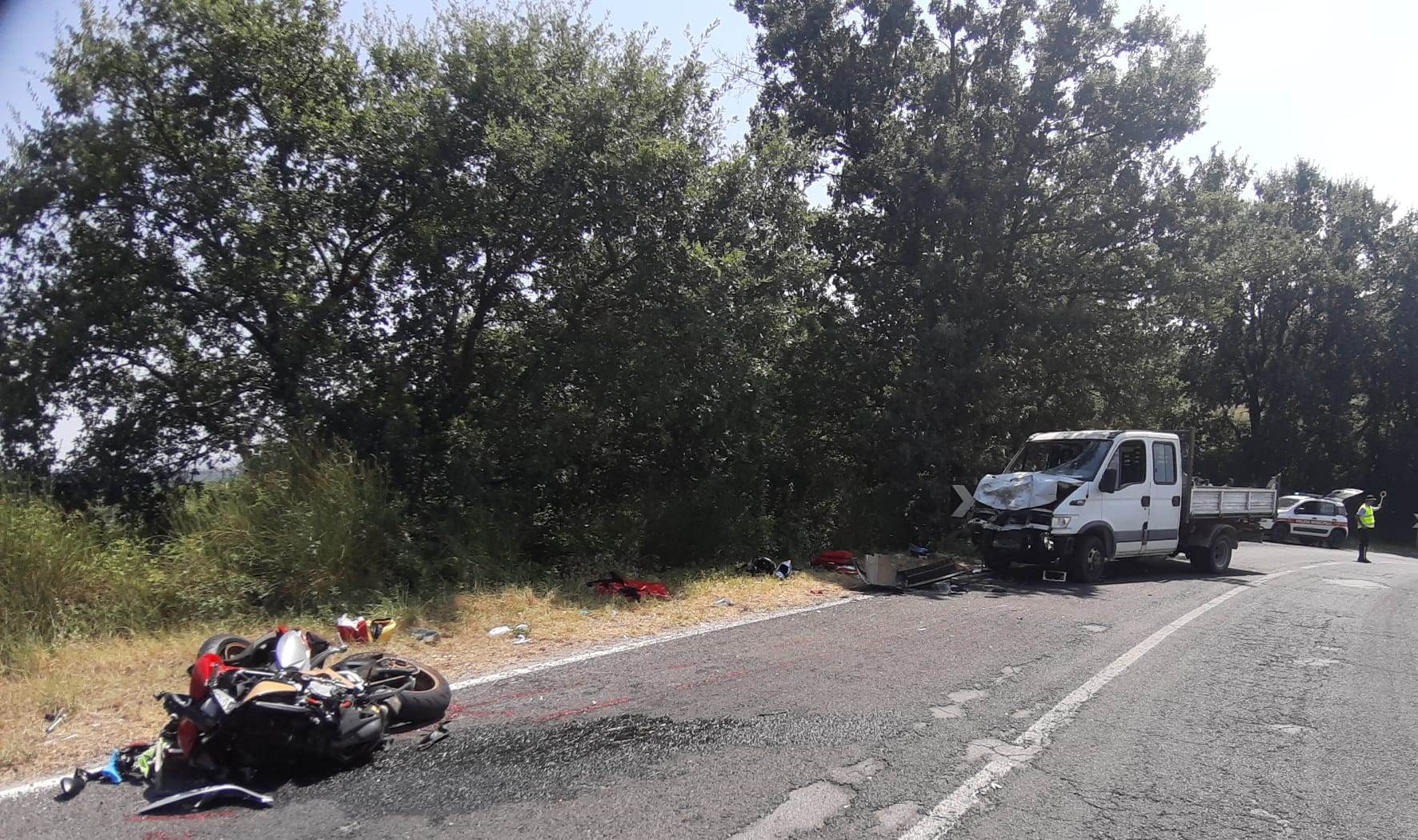 Oggi attorno alle 12.30, si è verificato un incidente frontale tra una moto e un autocarro lungo la SP 135 (Km4), la strada che collega Montepulciano con Torrita di Siena.