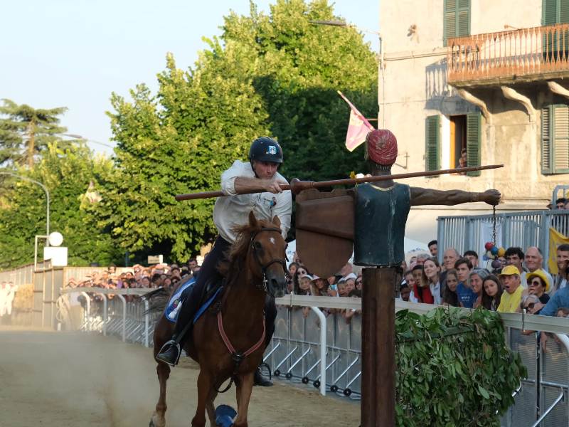 Il giostratore bianco azzurro Tony Bartoli si era aggiudicato anche la Provaccia del 14 agosto centrando quattro anelli su cinque, seguito da Giacomo Perugini per la Santissima Trinità e da Michele Cappelletti per San Bartolomeo con tre anelli ciascuno, da Claudio Rossi per San Lorenzo con due anelli e da Nicholas Faenzi per Sant’Andrea con uno.