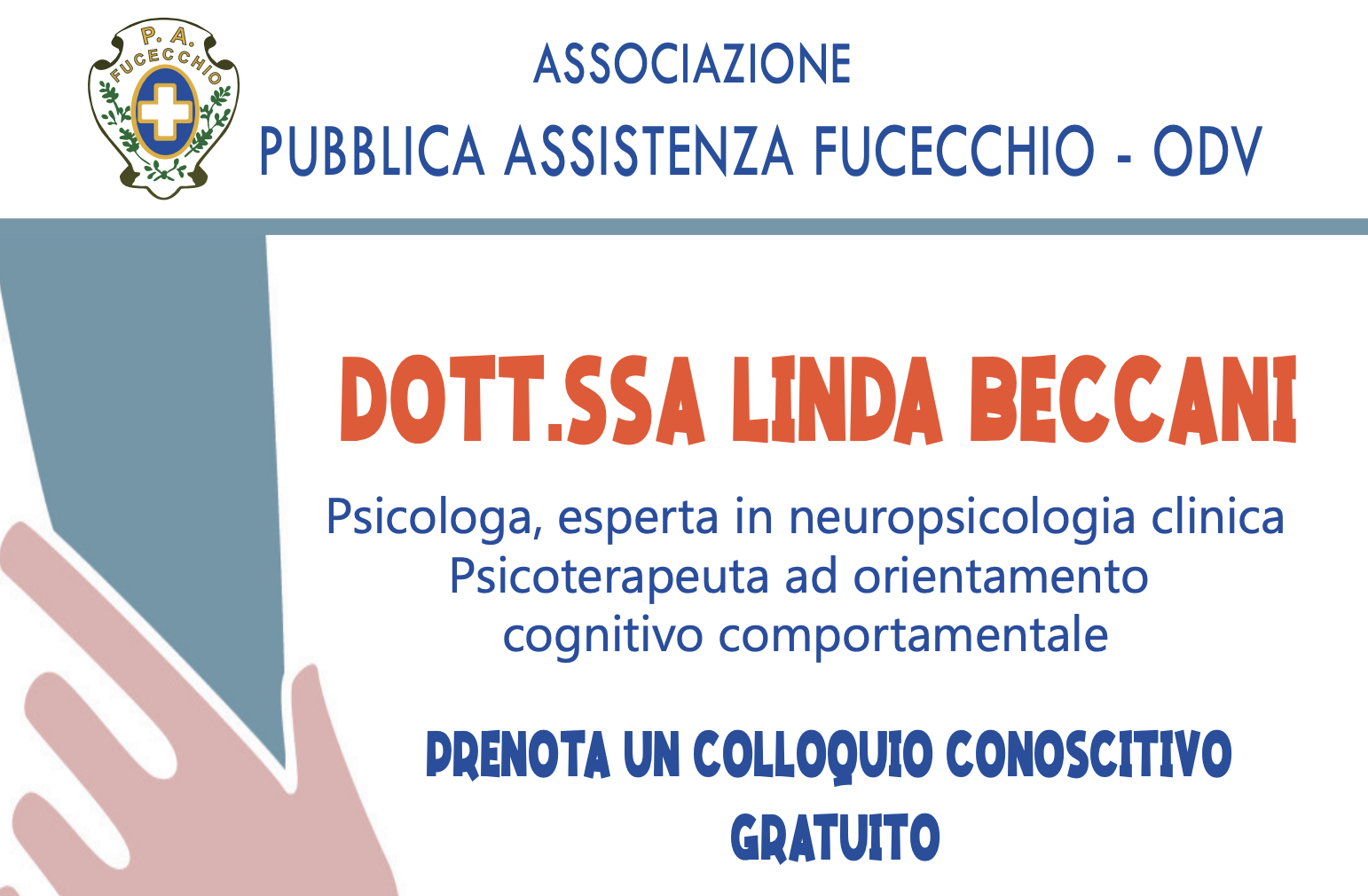Nel dettaglio si tratta della dottoressa Linda Beccani: psicologa, esperta in neuropsicologia clinica psicoterapeuta ad orientamento cognitivo comportamentale. Per prenotare un colloquio conoscitivo gratuito si può inviare una mail all’indirizzo linda.beccani@gmail.com oppure telefonare al numero 3394643240. Il servizio è rivolto a coloro che necessitano di una consulenza per la gestione dell’ansia e dello stress, per la consapevolezza di sé o per la valutazione e stimolazione di memoria e attenzione. Gli ambulatori presenti sono stati realizzati proprio per fornire alla gente di Stabbia (dove la Pubblica ha una sezione da molto tempo) delle opportunità a chilometro zero; in futuro l’associazione presieduta da Luigi Checchi vorrebbe mettere a disposizione anche uno sportello per aiutare gli anziani a prenotare esami e visite specialistiche, sempre negli stessi locali di via Provinciale Francesca.