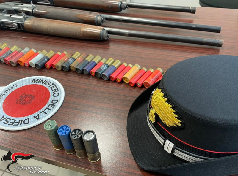 Ulteriori indagini sono state condotte nella sua abitazione, dove sono stati scoperti altri fucili e una carabina regolarmente denunciati ma detenuti illegalmente. Il 41enne, con precedenti legati alla caccia, è stato arrestato con accuse di possesso abusivo di armi, arma da guerra, detenzione illegale di armi e ricettazione. Tutte le armi sono state sequestrate. Il Tribunale di Livorno ha convalidato l'arresto e ha disposto l'obbligo di presentarsi alle autorità.