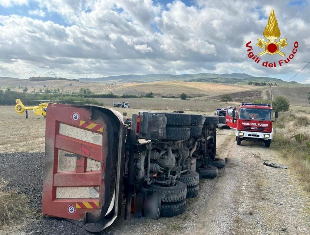 Un mezzo pesante si è ribaltato sulla via Volterrana a La Grillaia (Chianni), lungo la strada che porta all'interno della vecchia discarica. Il guidatore è stato portato con Pegaso all'ospedale.