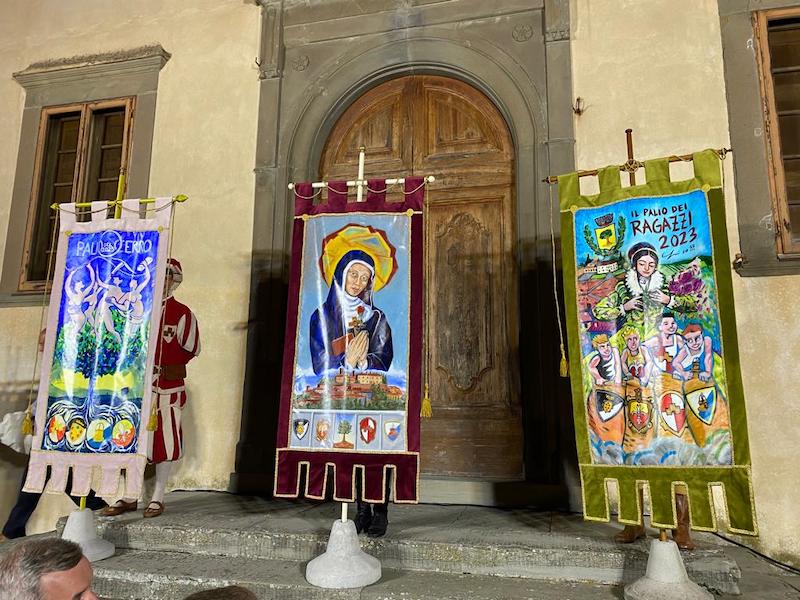 Tra i momenti più attesi nella settimana del Palio del Cerro, la presentazione dei cenci, accompagnata dalla benedizione, ha avuto luogo giovedì 31 agosto nel Giardino antistante la Villa Medicea.