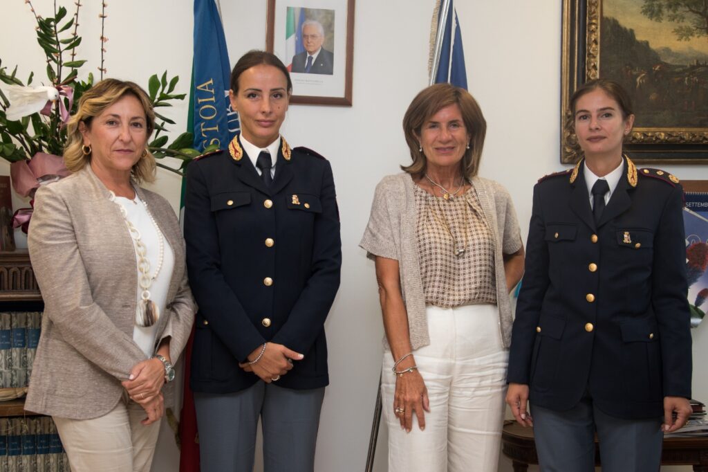 Da sinistra il questore di Pistoia Olimpia Abbate, Rossella de Gregorio, il prefetto di Pistoia Licia Messina e Veronica Brustenghi