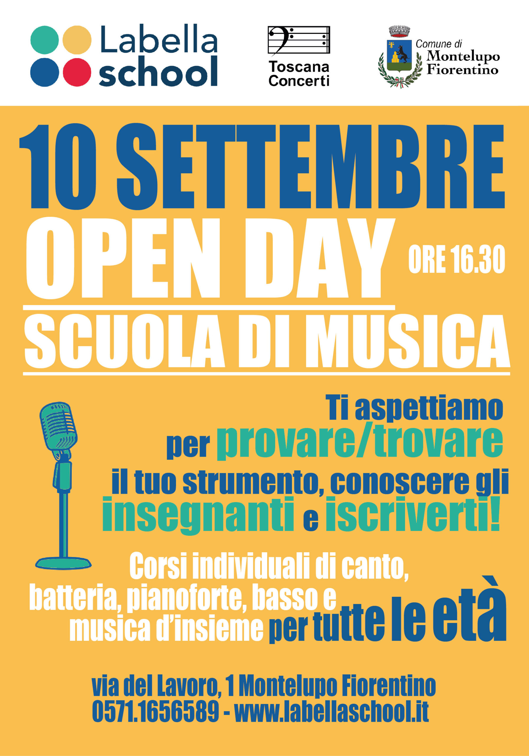 L’appuntamento con la musica al Labella School è in via del Lavoro, 1 a Montelupo Fiorentino, domenica 10 settembre dalle 16.30 alle 21. Durante l'Open Day sarà possibile suonare tutti gli strumenti e chiedere agli insegnanti di dimostrare le infinite possibilità di divertirsi e creare bellezza con la musica, sarà possibile iscriversi e/o iscrivere i propri figli, parlare con gli insegnanti e godersi il buffet messo a disposizione per l’evento.
