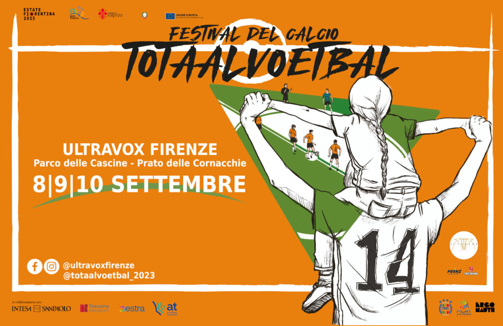 Al Festival del calcio Totaalvoetbal – che prende il nome dal rivoluzionario stile di gioco che impose il calcio olandese negli anni ’70 – parteciperanno, tra gli altri, la Federazione Italiana Giuoco Calcio, il Museo del Calcio di Coverciano, Play League Sport, Ergonauth. Il festival è organizzato da Ultravox Firenze e associazione Anfiteatro 2010, in collaborazione con Intesa Sanpaolo, Toscana Aeroporti, Estra, at – autolinee toscane. Sponsor Prinz e Becks. Con il patrocinio del Comune di Firenze, nell’ambito dell’Estate Fiorentina 2023. Progetto cofinanziato dall’Unione Europea – Fondo Europeo di Sviluppo Regionale, nell’ambito del Programma Operativo Città Metropolitane 2014-2020.