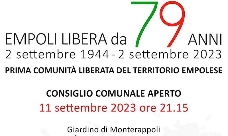 Un consiglio comunale aperto in sessione straordinaria dedicato ai 79 anni della Liberazione di Empoli, per ricordare i fatti e chi ne fu artefice. Si terrà lunedì 11 settembre 2023, con inizio alle ore 21.15 nel giardino di Monterappoli (in caso di maltempo nella casa comunale di Monterappoli, in via Salaiola). Si tratta della prima seduta ospitata in una frazione della città, una scelta legata al tema stesso dell'iniziativa: Monterappoli è stata infatti la prima zona di Empoli liberata, era il 29 luglio 1944, la città venne liberata invece nelle settimane successive. Non solo. Monterappoli è stato anche il primo luogo dove è avvenuto l'insediamento del Comune 'libero'.