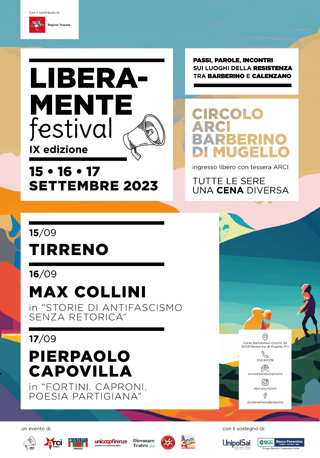 Liberamente Fest è un festival organizzato da Arci Firenze con il contributo di Regione Toscana per l’Avviso Pubblico per il finanziamento di progetto ed iniziative di tutela e valorizzazione del patrimonio storico, politico, culturale dell’antifascismo e della Resistenza.