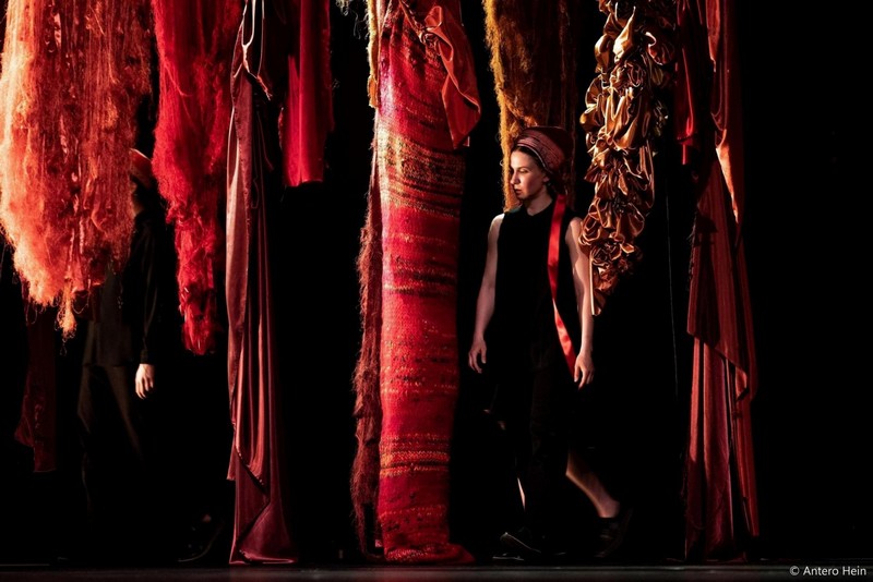 The Answer is Land è una poesia in cui Elle Sofe Sara si è imbattuta anni fa e che fa parte di Kiss From the Border, un’opera di Jenni Laiti, Niillas Holmberg e Outi Piesku, in cui otto righe del testo erano state collocate lungo la valle del fiume Deanu, al confine tra Finlandia e Norvegia. Questo progetto ha catturato la sua attenzione perché rappresenta un’arte politica e attivista guidata dall’amore e non dalla rabbia. Per lei, che vive in un villaggio e in una società Sámi, l’amore e il legame con la natura, con ciò che ci circonda, con le persone, sono importanti. Ha sentito il bisogno di creare un’esperienza di danza e yoik (i canti tradizionali Sámi) in cui la connessione con il luogo (la terra, la natura) e la solidarietà fossero i temi principali. Questo è stato il punto di partenza del progetto. Gli yoik sono canti di montagna e legati alla natura. Alcuni provengono da archivi, altri sono stati composti da Frode Fjellheim, uno le è stato insegnato da un anziano e uno l’ha scritto Elle Sofe Sara stessa.
