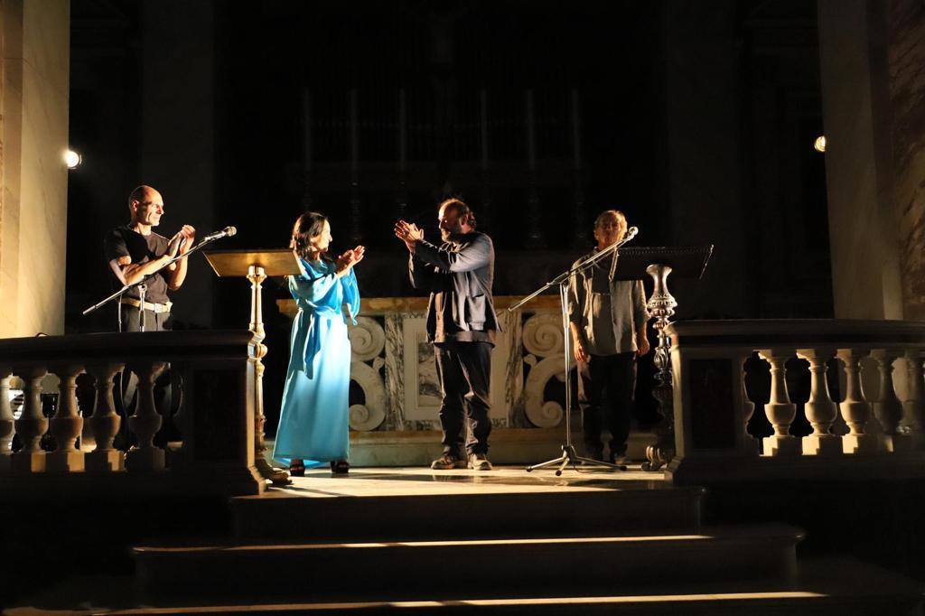 Testo e regia di Davide Rondoni, che ha ideato per l’occasione un dialogo tra la Misericordia, interpretata da Benedetta Giuntini e l’inquietudine rappresentata da David Riondino, il tutto accompagnato dalla fisarmonica di Emiliano Benassai.