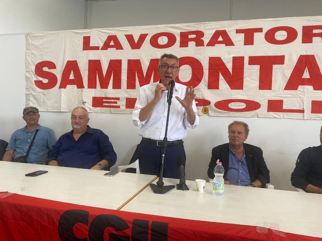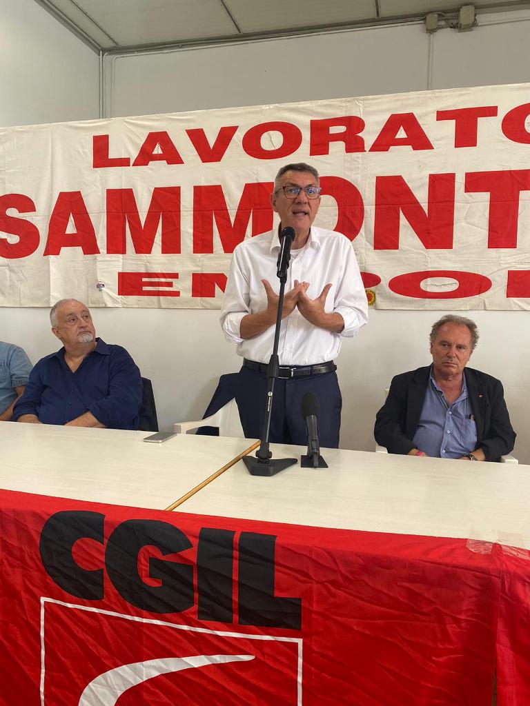 Il segretario nazionale Cgil Maurizio Landini ha fatto visita alla Rsu della Sammontana, che per l'occasione si è riunita in assemblea per uno scambio di opinioni in vista della manifestazione generale a Roma il prossimo 7 ottobre, 'La via maestra - Insieme per la costituzione'.