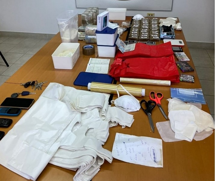 La successiva attività di indagine, volta all’acquisizione di ulteriori elementi probatori nell'abitazione dell’arrestato, condotta con il supporto anche da personale dell’ Ufficio Controllo del Territorio, ha permesso di rinvenire e sequestrare ulteriormente 3,393 chili di hashish e 1,148 di cocaina, 215.840 euro suddivisi in diverse banconote, nonché telefoni cellulari e vario materiale usato per la preparazione e confezionamento della sostanza stupefacente.