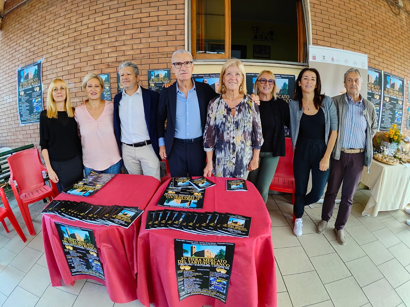 La conferenza stampa di presentazione si è tenuta nella mattinata di sabato 23 settembre al circolo Arci di Corazzano, alla presenza di: Marzia Bellini (portavoce del circolo), Simone Giglioli (sindaco di San Miniato), Marzio Gabbanini e Domenico Barsotti (presidente e vicepresidente di Fondazione San Miniato Promozione); poi i due tartufai locali Luciana Manetti e Leonardo “Il lupo” Bandini, oltre a Piero Campinoti, che ha recitato un ‘ ottava rima per ripercorrere una delle tradizioni di Corazzano e raccontare l’evoluzione di questo caratteristico borgo. “Grazie al sostegno dell’amministrazione comunale e di Fondazione SMP – sottolinea Marzia Bellini -. Noi punteremo forte sui nostri piatti della tradizione, dal tagliolino alla zuppa di cipolla. Abbiamo fatto un grande sforzo per poter offrire il concerto dell’Equipe 84 perché è molto attinente al tema di quest’anno, cioè la Corazzano che fu. I prodotti che cucineremo sono tutti acquistati nella nostra frazione, perché è giusto che tutti possano godere della festa”.