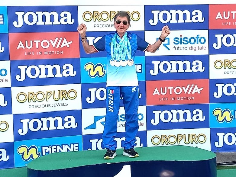 All’età di 88 anni, compiuti durante la competizione (il 30 settembre), il massimo dirigente/atleta ha dimostrato condizione fisica e mentale eccezionali, sciorinando prestazioni strabilianti: con classe e stile ha conquistato quattro podi e che podi! Due le medaglie d’oro, vinte nei 400 metri piani categoria M85 e nella staffetta 4x100 metri M80 (una categoria inferiore alla sua, con tanto di primato italiano); un argento nei 200 metri M85 e un bronzo nei 100 metri M85. Performance anticipate dai 4 ori ottenuti ai Regionali, a Pietrasanta, ove anche la sua Atletica aveva ben figurato.