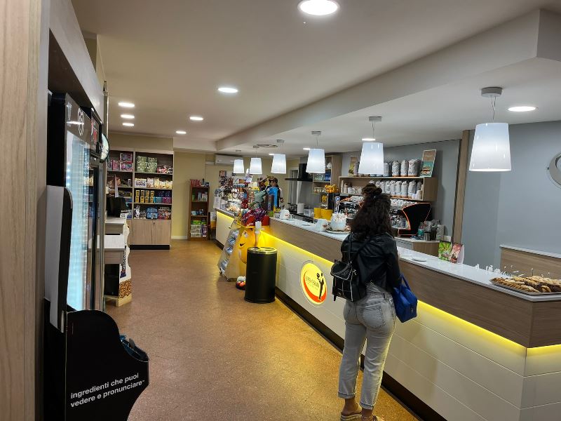 Oltre allo spazio bar, torna in una nuova veste anche il minimarket. La novità è invece lo spazio riservato alla vendita di giornali e riviste. Inoltre, con la ristrutturazione è stata valorizzata maggiormente la zona della terrazza. Come ulteriore servizio per l’utenza, sono in corso di installazioni alcune postazioni USB per ricariche di cellulari o sistemi digitali.