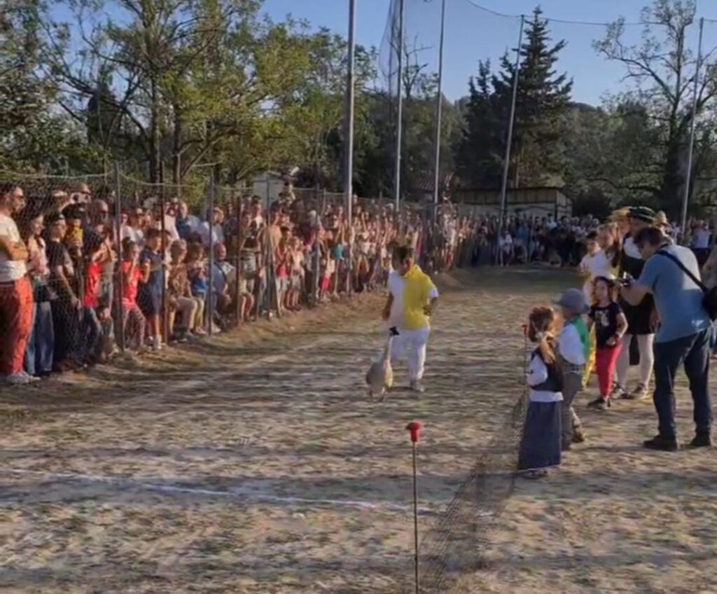 Quarantadue anni di sana competizione tra contrade e non sentirli. Ieri la frazione di Balconevisi, piccolo borgo in cima ai colli di San Miniato, si è animata per il weekend dedicato alla Sagra del Tartufo e soprattutto per il Palio del Papero. Per chi non è avvezzo a questa tradizione, niente paura: è un'innocua corsa che coinvolge appunto dei paperi che vengono fatti correre per il circuito del campo sportivo al battere delle mani dei piccoli contradaioli che si posizionano dietro di loro. Il primo papero a tagliare il traguardo tra Buecchio, Fornacino, Borgo e Fondo di Scesa vince. E anche stavolta, come nel 2022, a vincere è stata la frazione ai piedi del colle, Fondo di Scesa. I biancogialli si sono posizionati in cima al podio. Sorte diversa per l'ultimo papero arrivato, quello dei biancorossi del Borgo, che finisce 'in pentola'. Ma ricordiamo, nessun animale viene cucinato né maltrattato durante la corsa e la competizione. Il Palio è stato il gran finale di un weekend di festa, con tanti eventi dedicati al tartufo e alla scoperta delle campagne di Balconevisi.