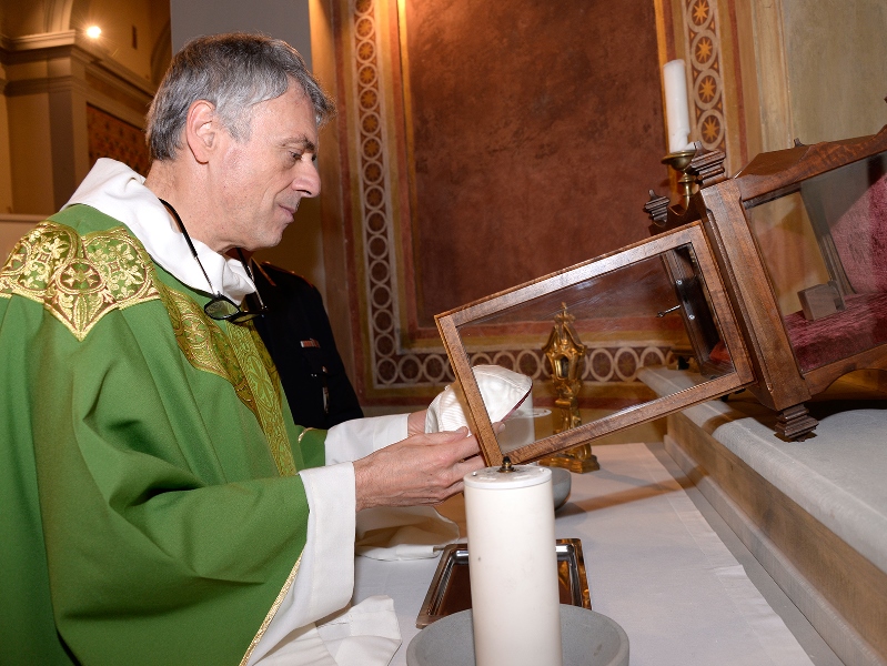 Il Parroco, al termine della celebrazione, ricevuta l’urna che custodisce lo Zucchetto del Santo Padre, realizzata appositamente da un’ebanista locale, che resterà custodita all’interno della Pieve a ricordo di questo incontro con il Pontefice, ha dato lettura di due missive provenienti dalla Santa Sede con la benedizione apostolica impartita da Papa Francesco al Comandante Baldini e al Maresciallo Capo Maurizio Ticconi che per 10 anni è stato Vicecomandante della locale Stazione Carabinieri barberinese ora chiamato a un nuovo prestigioso incarico presso la Scuola Marescialli e Brigadieri Carabinieri Maritano di Firenze. Alla consegna era presente anche il Comandante della Stazione Carabinieri di Barberino di Mugello Maresciallo Capo Francesco Fiore, il Comandante della Tenenza della Guardia di Finanza di Borgo San Lorenzo Luogotenente Vincenzo Emanuele e il responsabile del Distretto dei Vigili del Fuoco di Barberino di Mugello Daniele Bartoloni. Don Stefano ha poi consegnato all’Amministrazione e alla Polizia Municipale, in segno di ringraziamento per quanto fatto nell’emergenza terremoto e nei mesi della pandemia, una targa ricordo.