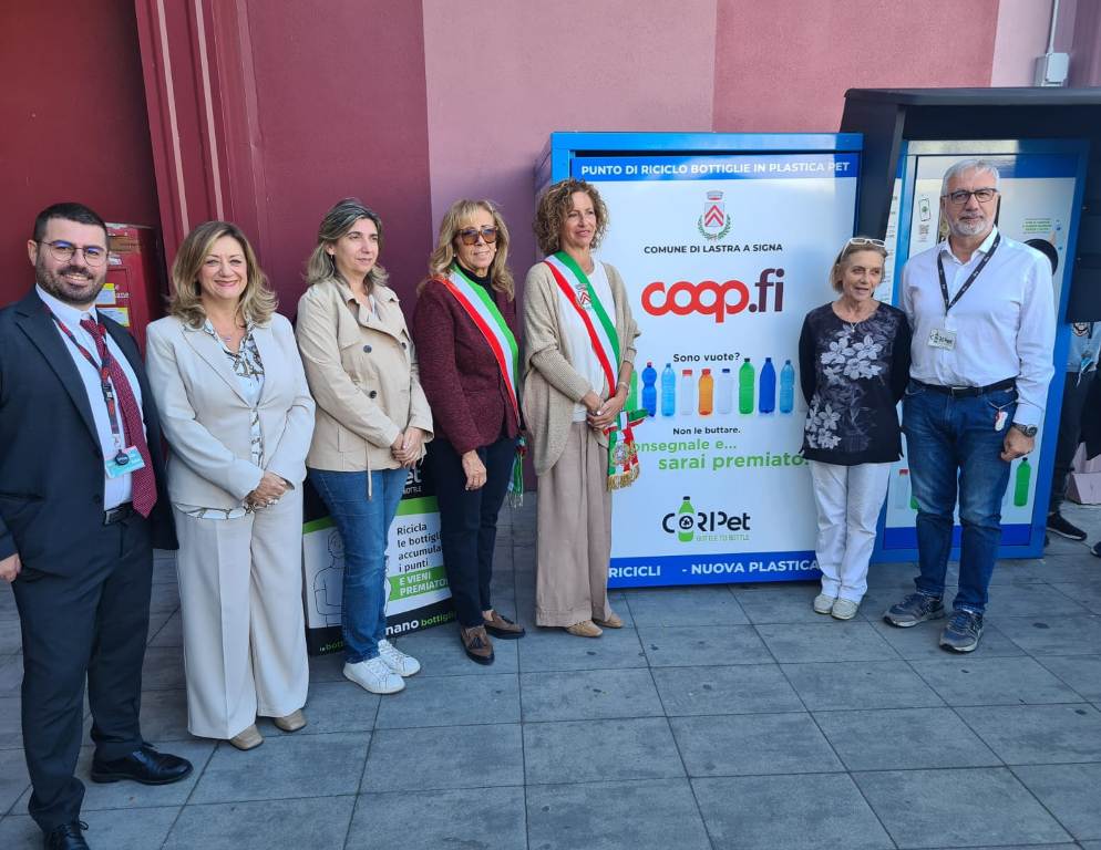 È stato inaugurato questa mattina al Coop.fi di Lastra a Signa, in Via Santa Maria a Castagnolo, l’ecocompattatore per la raccolta di bottiglie in PET conferite dai consumatori, alla presenza di Angela Bagni e Annamaria Di Giovanni, Sindaco e Assessore all'Ambiente del Comune di Lastra a Signa, di Elisabetta Guerrini, Presidente Sezione soci Coop Le Signe e di alcune classi della scuola secondaria di primo grado L. da Vinci di Lastra a Signa che, accompagnate dalla Dirigente scolastica Eleonora Marchionni, hanno partecipato al taglio del nastro e subito sperimentato l’utilizzo del macchinario. All’inaugurazione di questa mattina, seguiranno nuove installazioni in altri Coop.fi nelle prossime settimane, con l’obiettivo di fornire a soci e consumatori un servizio molto apprezzato, che stimola comportamenti virtuosi, contrasta l’abbandono dei rifiuti e consente di innescare un processo di economia circolare per dare alle bottiglie di plastica a una seconda vita.