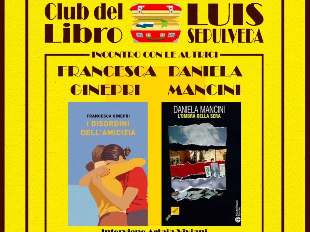 Mercoledì 18 Ottobre alle 21.15 le autrici Daniela Mancini con L'ombra della sera e Francesca Ginepri con I disordini dell'amicizia (Porto Seguro Editore) saranno ospiti del Club del Libro Luis Sepulveda di Montelupo Fiorentino.