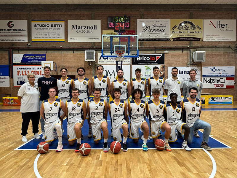 Nel match che vede il debutto dei giovani classe 2006 Enrico Edelu Damiani e Pietro Bartolini, i ragazzi di Dario Chiarugi approcciano con grande intensità, soprattutto in fase difensiva, allungando già al 10′ quando il tabellone segna 18-9. Un vantaggio che i gialloblu amministrano nella seconda frazione, andando al riposo lungo sul 28-21. Ed è al rientro dagli spogliatoi che la truppa castellana decide di indirizzare definitivamente la sfida: un nuovo parziale nel terzo quarto, infatti, vale il +12 alla terza sirena (46-34), preludio ad una quarta frazione in cui i gialloblu restano in controllo fino al quarantesimo.