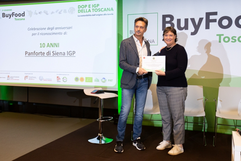 Il Panforte di Siena e l’Agnello del Centro Italia celebrano due lustri dal prestigioso conferimento del marchio di Indicazione Geografica Protetta. Il Vitellone bianco dell’Appennino Centrale festeggia un quarto di secolo da IGP insieme alla denominazione Olio Evo Toscano IGP che si conferma campione nella Dop Economy della Toscana, uno dei prodotti che contribuisce maggiormente al valore della produzione in compagnia di Cantucci Toscani IGP, Prosciutto Toscano DOP, Pecorino Toscano DOP e Finocchiona IGP. Cresce il valore dell’agricoltura Made in Tuscany (+17% su base annua), e sale l’export della prima regione d’Italia per prodotti IG incidenza di superficie biologica (37%): anniversari, numeri e assaggi al centro della giornata conclusiva di Buy Food Toscana, vetrina internazionale dei prodotti agroalimentari a indicazione geografica che ogni anno attrae buyer da tutto il mondo per allacciare rapporti commerciali direttamente con i produttori di eccellenze toscani. La quinta edizione (26 e 27 ottobre 2023) ha portato al Palazzo degli Affari di Firenze circa 68 produttori certificati DOP, IGP, Agriqualità, Prodotti di Montagna, Biologico e PAT e più di 50 compratori interessati.