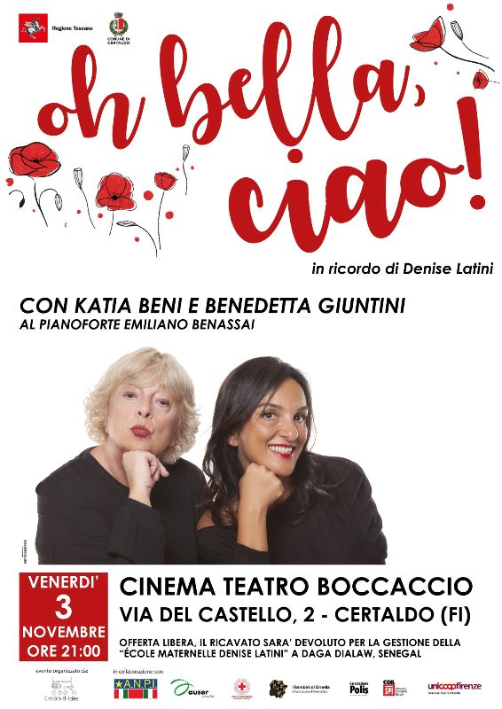 "O Bella, ciao!" è ormai un appuntamento fisso che si presenta quest’anno con importanti novità per ricordare la certaldese, prematuramente scomparsa tre anni fa e da sempre attiva per i diritti dei lavoratori, che ha ricoperto importanti ruoli istituzionali a livello locale. Sul palco ci sarà l’immancabile accoppiata formata dalle due attrici d’eccezione, Katia Beni e Benedetta Giuntini, accompagnate questa volta al pianoforte dal musicista Emiliano Benassai.
