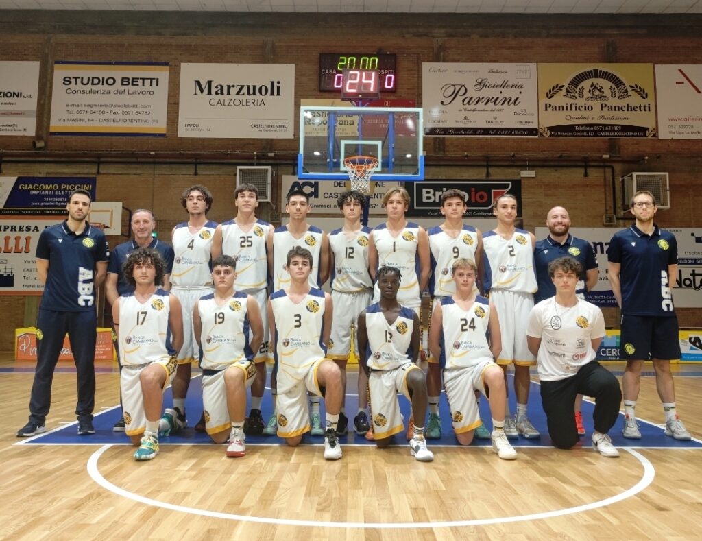 Inizia in salita l’avventura dei ragazzi di Claudio Calvani, con il Costone Siena che all’esordio espugna il PalaBetti per 51-65. Dopo un primo quarto giocato sul botta e risposta (11-14 al 10′), gli ospiti allungano nella seconda frazione andando negli spogliatoi sul +9 (19-28). Al rientro dall’intervallo, guidati da Bini in fase offensiva (21 realizzati), i gialloblu cercano di tenere aperta la sfida, ma i senesi mantengono il controllo e allargano la forbice fino al 37-51 su cui si va al terzo riposo. Un vantaggio che, in una quarta frazione giocata in perfetto equilibrio, il Costone amministra e difende fino alla sirena.