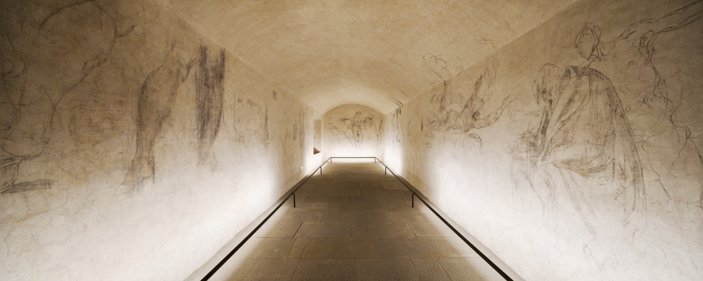 “Questo ambiente così piccolo è un vero unicum per il suo eccezionale potenziale evocativo. Le sue pareti sembrano contenere a stento numerosi schizzi di figura, in buona parte di formato monumentale, tracciati da segni che attestano una grande chiarezza progettuale – ha commentato Francesca de Luca, curatrice del Museo delle Cappelle Medicee -. A questi si accompagnano studi, variamente accurati o sommari, di dettagli anatomici, di volti, di pose inconsuete. Non in tutti i disegni è avvertibile la stessa sostenuta tensione qualitativa della grafica di Michelangelo, che secondo la ricostruzione di Paolo dal Poggetto, scopritore di queta stanza nel 1975, qui si sarebbe potuto esercitare nel 1530 durante la sua latitanza per salvarsi dall’ira di papa Clemente VII Medici dovuta alla sua attività di responsabile delle fortificazioni presso il governo repubblicano, che aveva espulso la famiglia nel 1527. Tuttavia questo luogo permette ai visitatori di oggi l'esperienza unica di poter entrare in contatto diretto non solo con il processo creativo del maestro, ma anche con la percezione della formazione del suo mito di divino artista, preso a modello dai colleghi contemporanei e dai giovani iscritti all’Accademia delle arti del Disegno, di cui Michelangelo fu nominato "Padre e Maestro", che nel 1563 stabilì la sua sede in Sagrestia”.