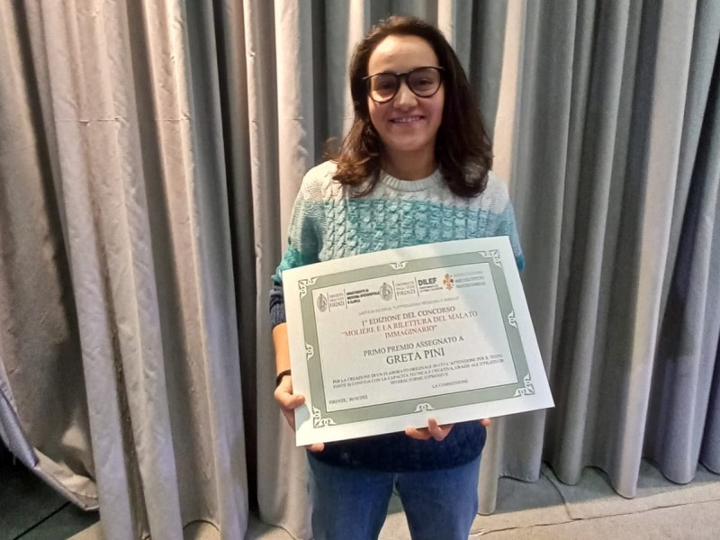 È Greta Pini la vincitrice del concorso “Molière e una rilettura del Malato immaginario”, dedicato alle studentesse e agli studenti del corso di laurea in Medicina e chirurgia dell’Università di Firenze, che si sono cimentati in una rilettura in chiave moderna dei temi presenti nell’opera del grande commediografo francese.