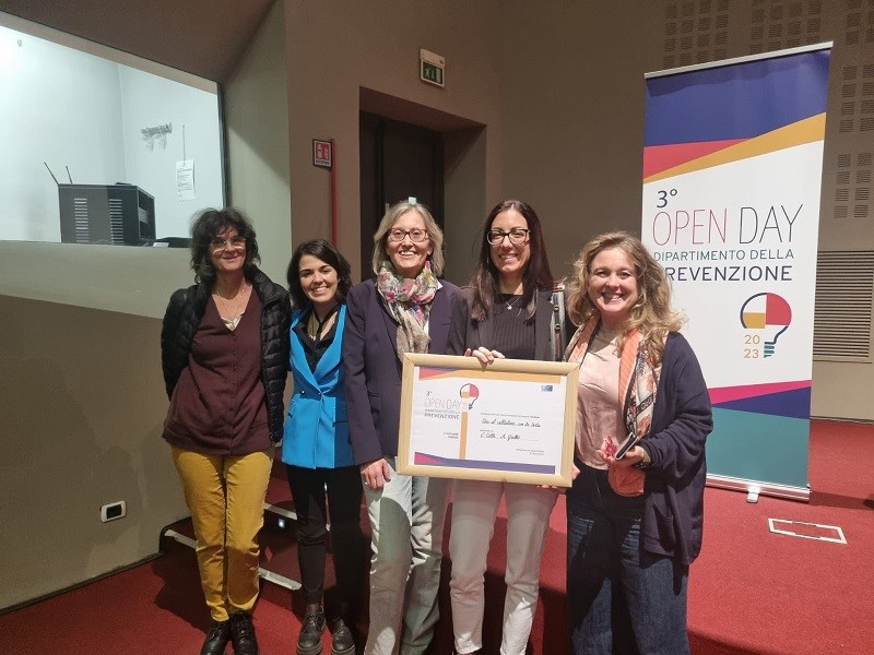 A ricevere l’attestato del progetto vincitore, tutto il gruppo dei progettisti Antonella Nanni, Chiara Colli, Annalisa Grillo, Elio Marzuoli, Massimo Ancillotti e Giovan Giuseppe Cervera, insieme a Gianna Ciampi, Direttore UFC della Promozione della Salute. “Usa il cellulare con la testa” mira a sviluppare consapevolezza sull’importanza delle pause digitali e del bilanciamento tra attività online e offline. Saranno organizzati incontri con gli studenti e con i genitori presso gli istituti scolastici e realizzati messaggi informativi come brevi video o infografiche sia a scuola che nei luoghi di lavoro.