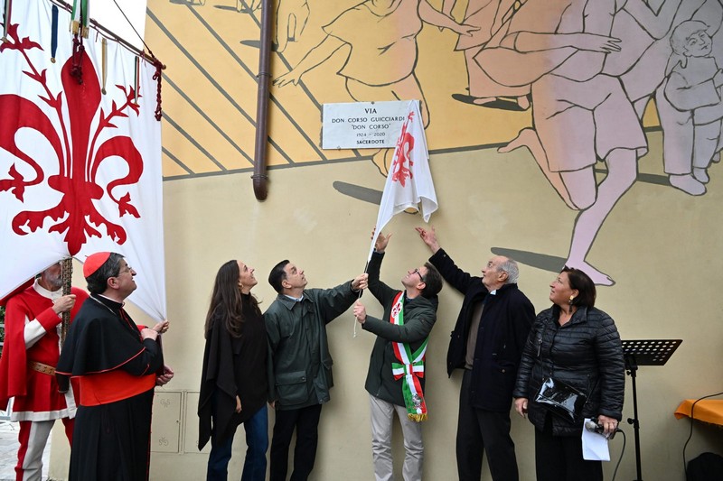 “Don Corso è stata una persona per cui le parole non bastano mai – ha aggiunto l’assessore Funaro –. La Madonnina del Grappa è sempre stata ed è un punto di riferimento importantissimo nel quartiere e nella città grazie alle persone che l’hanno fatta nascere e crescere, Don Giulio Facibeni e Don Corso Guicciardini che ne ha raccolto il testimone con una forza e un amore straordinari. Tra i momenti più belli che ricordo quando, durante una qualunque cerimonia istituzionale all’interno della Madonnina del Grappa, arrivavano i “suoi” ragazzi e Don Corso non aveva occhi che per loro, occhi che, anche in età avanzata, erano fieri, giovani, pieni di energia e di speranza. Don Corso non era un uomo di tante parole, ma quando parlava le sue parole erano piene di significato, di contenuto, di risposte, di spiritualità. Inoltre, penso che questa strada intitolata a Don Corso abbia un significato straordinario perché in quest’angolo sono presenti racchiude tutto quello in cui lui ha sempre creduto: qui ci sono proprietà della comunità ebraica, dell’Opera della Madonnina del Grappa, della Misericordia e della parrocchia. Tutti i punti di riferimento del quartiere che dialogano sotto il nome e nella scia dell’opera di Don Corso”.