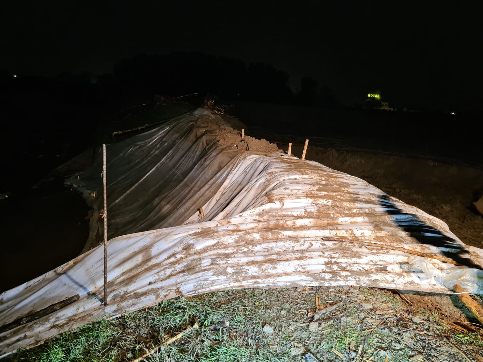 Anche a Quarrata i lavori sono proseguiti per tutta la notte per chiudere la falla nell'argine del torrente Stella in località La Costaglia. Le nuove precipitazioni cadute in serata hanno reso la situazione ancora più difficile, ma stamattina il personale operativo del Consorzio è finalmente riuscito a posizionare un telo per fermare la filtrazione dell'acqua e permettere la riparazione dell'argine.