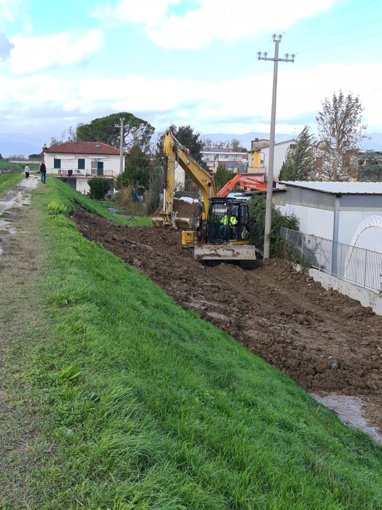 In mattinata sono terminati i lavori di ripristino della sezione di deflusso del torrente Furba a Seano (Carmignano).