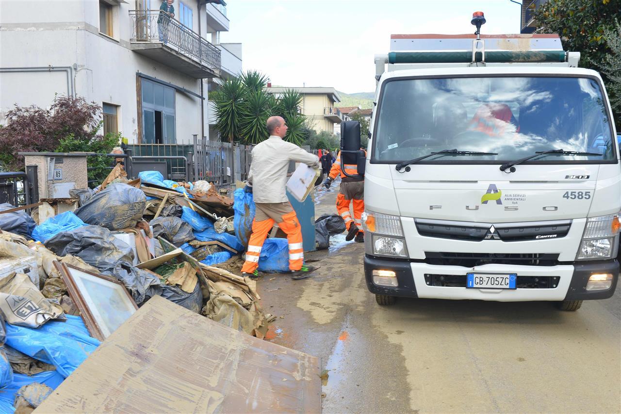 La priorità, emersa fin dalle prime ore dell’emergenza, è quella del recupero dei rifiuti ingombranti, ma anche Raee (rifiuti elettrici ed elettronici) e indifferenziati che i cittadini hanno accumulato a bordo strada dopo avere liberato le abitazioni e le attività commerciali invase dall’acqua. Secondo un primo calcolo, nei Comuni dell’Ato Toscana Centro colpiti dall’alluvione sono circa 45.000 le utenze coinvolte, distribuite su circa 900 strade, per una stima di 100.000 tonnellate e 350.000 metri cubi di materiale da rimuovere, un quantitativo pari a 70 campi da calcio di rifiuti alti un metro.