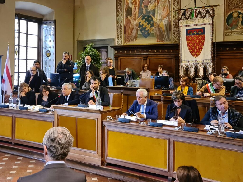 Si è svolto stamani nel Salone Consiliare del Comune di Prato l’incontro tra Antonio Tajani, Vicepresidente del Consiglio dei ministri e ministro degli affari esteri e della cooperazione internazionale, il Sindaco di Prato, Matteo Biffoni, il presidente della Regione Toscana Eugenio Giani, nominato anche commissario per l’emergenza, con le imprese e i rappresentanti del tessuto economico sociale in rappresentanza delle imprese colpite dall’alluvione. Presente anche la parlamentare Erica Mazzetti.