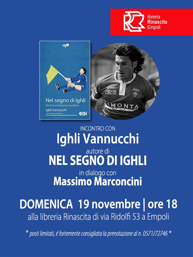 Alla Libreria Rinascita di via Ridolfi 53, domenica 19 novembre, alle ore 18, lo storico giocatore dell'Empoli Ighli Vannucchi, che presenterà il suo libro "Nel segno di Ighli. Storia di un fantasista di periferia", scritto con Andrea Valentini.