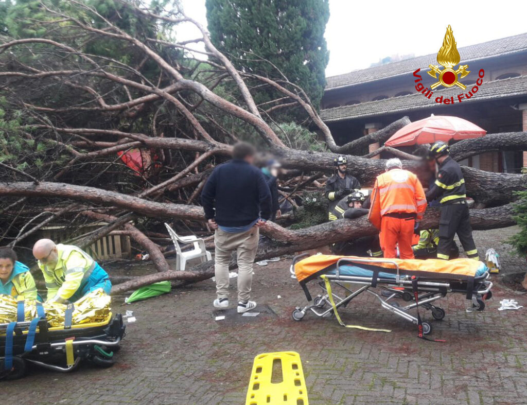 Un grande pino è crollato nel parco delle terme La Salute a Montecatini. Sono rimaste ferite 7 persone, tra cui degli agenti di polizia e l'amministratore unico della società Terme. Quest'ulimo è stato trasportato con l'elisoccorso Pegaso in ospedale a Careggi. Nessuno fortunatamente è in pericolo di vita.