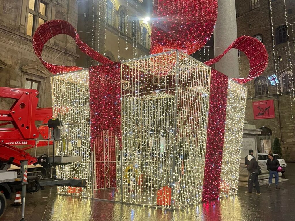 Aprono e concludono la passeggiata più glamour della città, nel tratto compreso fra Santa Trinita e piazza Antinori, due grandi installazioni luminose a forma di pacco regalo, aperte e percorribili, nelle quali si potrà entrare per scattare una foto o girare un video ricordo immersi nell’atmosfera natalizia.