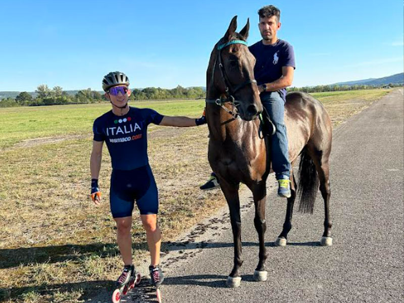 E se un cavallo da corsa e il campione del Mondo di Pattinaggio si sfidassero in una gara? Venerdì 24 novembre alle ore 12, nella pista dell’aeroporto di Ampugnano, in Strada dell’Aeroporto nel Comune di Sovicille, Duccio Marsili, neolaureato campione del Mondo di Pattinaggio Corsa, sfiderà in una gara un cavallo da corsa, montato per l’occasione da Giosuè Carboni, detto Carburo, fantino esperto del Palio di Siena. I due si cimenteranno in una gara di velocità percorrendo una dirittura di 150 metri, la sfida nasce dalla volontà del Campione del Mondo di cimentarsi in un qualcosa di altamente adrenalinico e stravagante, ma allo stesso tempo omaggiando la sua città, Siena, da sempre uniti da un legame indissolubile.