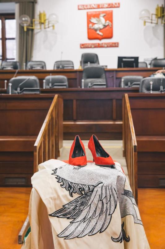 "Come ogni anno, nella settimana in cui si celebra la giornata internazionale contro la violenza sulle donne, al centro dell’aula c’è un paio di scarpe rosse", ha detto infatti il vicepresidente Stefano Scaramelli aprendo i lavori del Consiglio regionale. "Le scarpe rosse sono assurte a simbolo della giornata, per denunciare gli abusi sulle donne e i femminicidi, dal 2009. Per dare più valore al nostro messaggio e urlare basta contro la violenza sulle donne, da oggi la facciata del palazzo del Pegaso sarà illuminata di rosso. Soprattutto per dare più valore agli eventi tragici degli ultimi giorni, perché non si ripetano più".