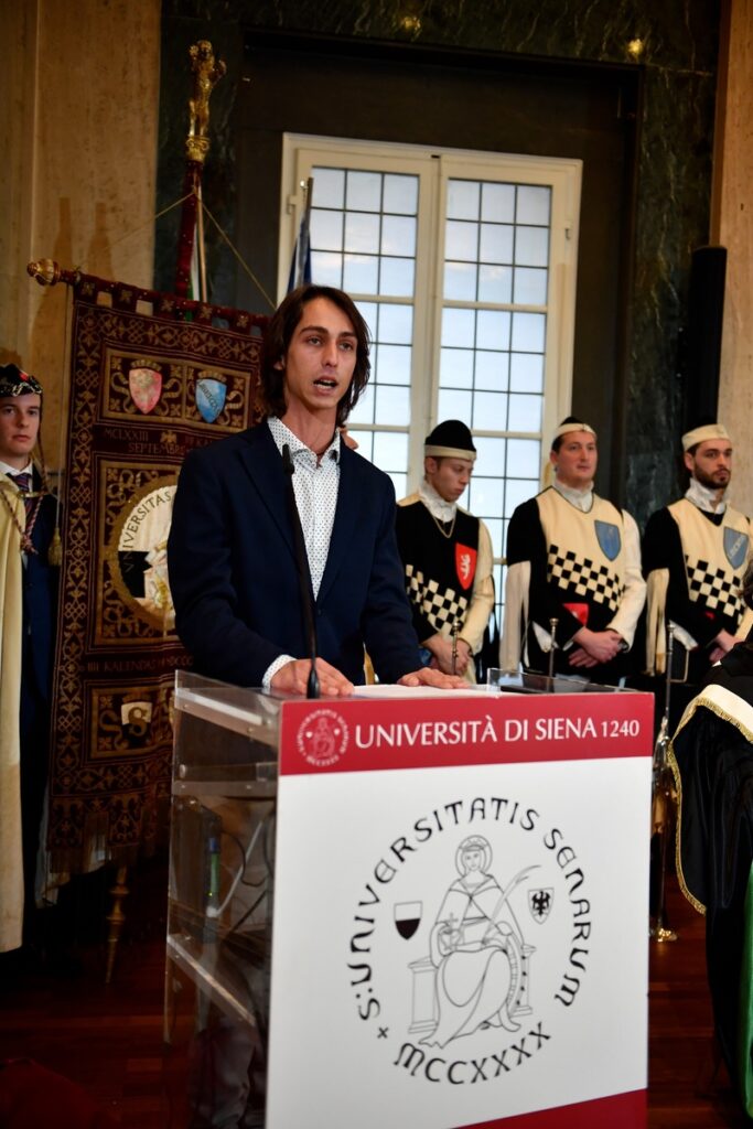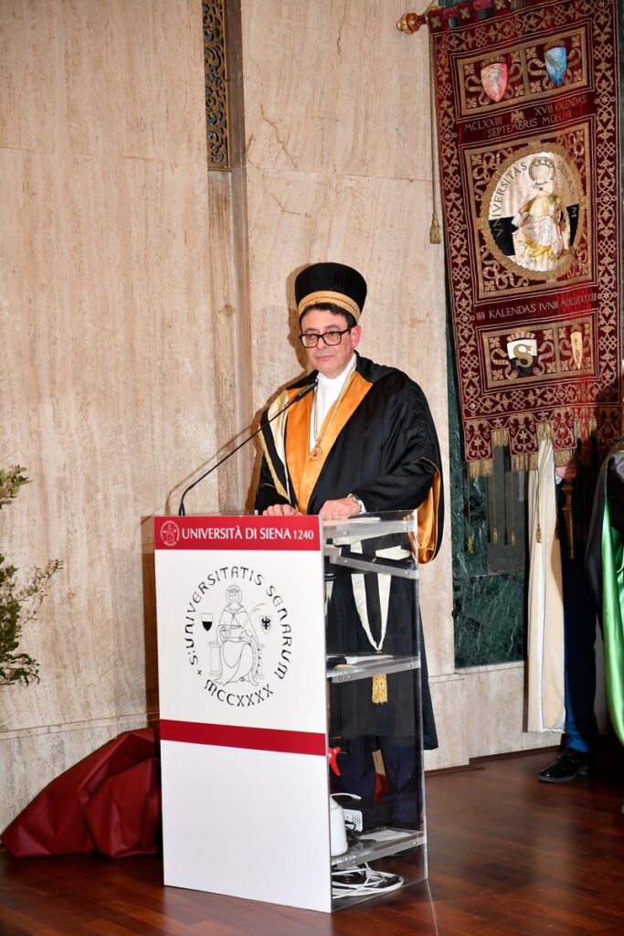 Il Rettore ha poi terminato il suo intervento con una citazione da “Il Visconte dimezzato” di Italo Calvino: «Vorrei dire alle nostre studentesse e ai nostri studenti che nell’epoca di evidente incertezza che stiamo vivendo prendete il percorso di studi che state frequentando nell’Università di Siena come un periodo importante nella vostra formazione, ma non quello da cui dipende tutta la completezza della vostra vita. Siete giovani e, se qualche volta vi sentirete incompleti, è semplicemente perché siete giovani. “Alle volte uno si sente incompleto ed è soltanto giovane”».
