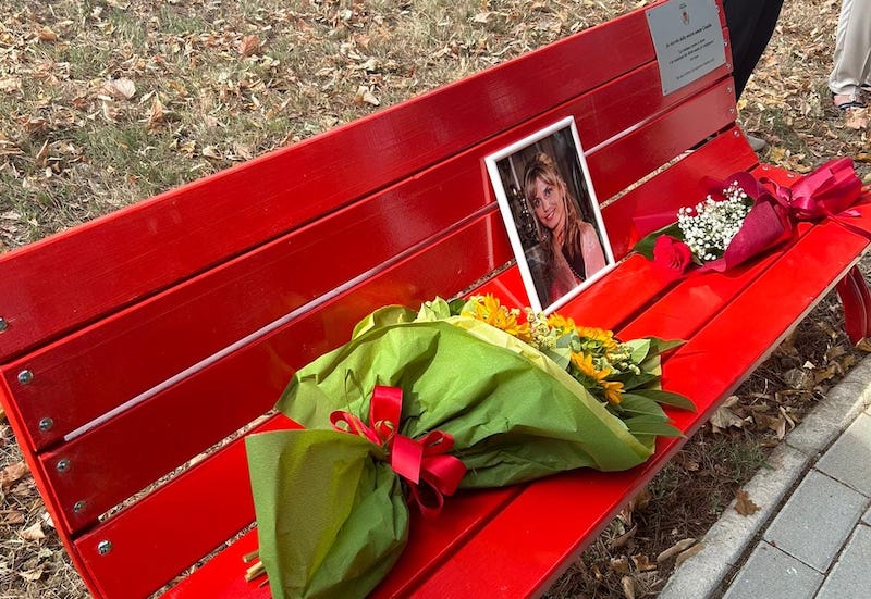 Panchina rossa dedicata a Claudia Corrieri, Prato (foto da Facebook)