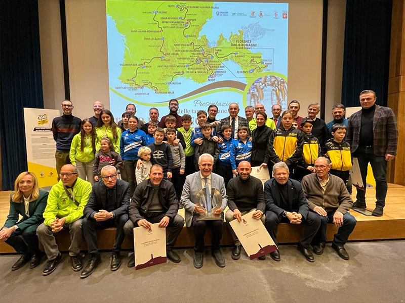 Poche ore prima, invece, all’auditorium Crédit Agricole il sindaco di Firenze Dario Nardella ha portato il trofeo “Grand Depart”, la “coppa” creata nel 2013 per unire idealmente tutte le comunità che ospitano il Tour de France (tra cui, nel 2024, quella di Firenze e della Toscana, visto che La Grand Boucle del prossimo anno prenderà il via dall’Italia). Nardella è stato anche insignito dell’onorificenza di ambasciatore del tartufo bianco di San Miniato nel mondo, in una cerimonia molto partecipata, guidata dal direttore Toscana-Umbria dell’istituto bancario Massimo Cerbai e che ha potuto godere anche della presenza di campionissimi della storia del ciclismo, a cominciare da Paolo Bettini (un oro olimpico e due mondiali) e Fabiana Luperini (3 Tour de France e 5 Giri d’Italia). E poi Francesco Casagrande (secondo al Giro d’Italia del 2000), Primo Mori (vincitore di una tappa nel 1970 al Tour) e i suoi due figli – anch’essi ciclisti professionisti – Massimiliano e Manuele Mori. “Grazie per questo titolo – ha sottolineato Nardella – cercherò di fare del mio meglio nel valorizzare questo splendida risorsa. Vedere il Tour che parte da Firenze e dalla Toscana è un sogno che si realizza”. Presente anche Piero Ulivieri, vicepresidente Fondazione CRSM.